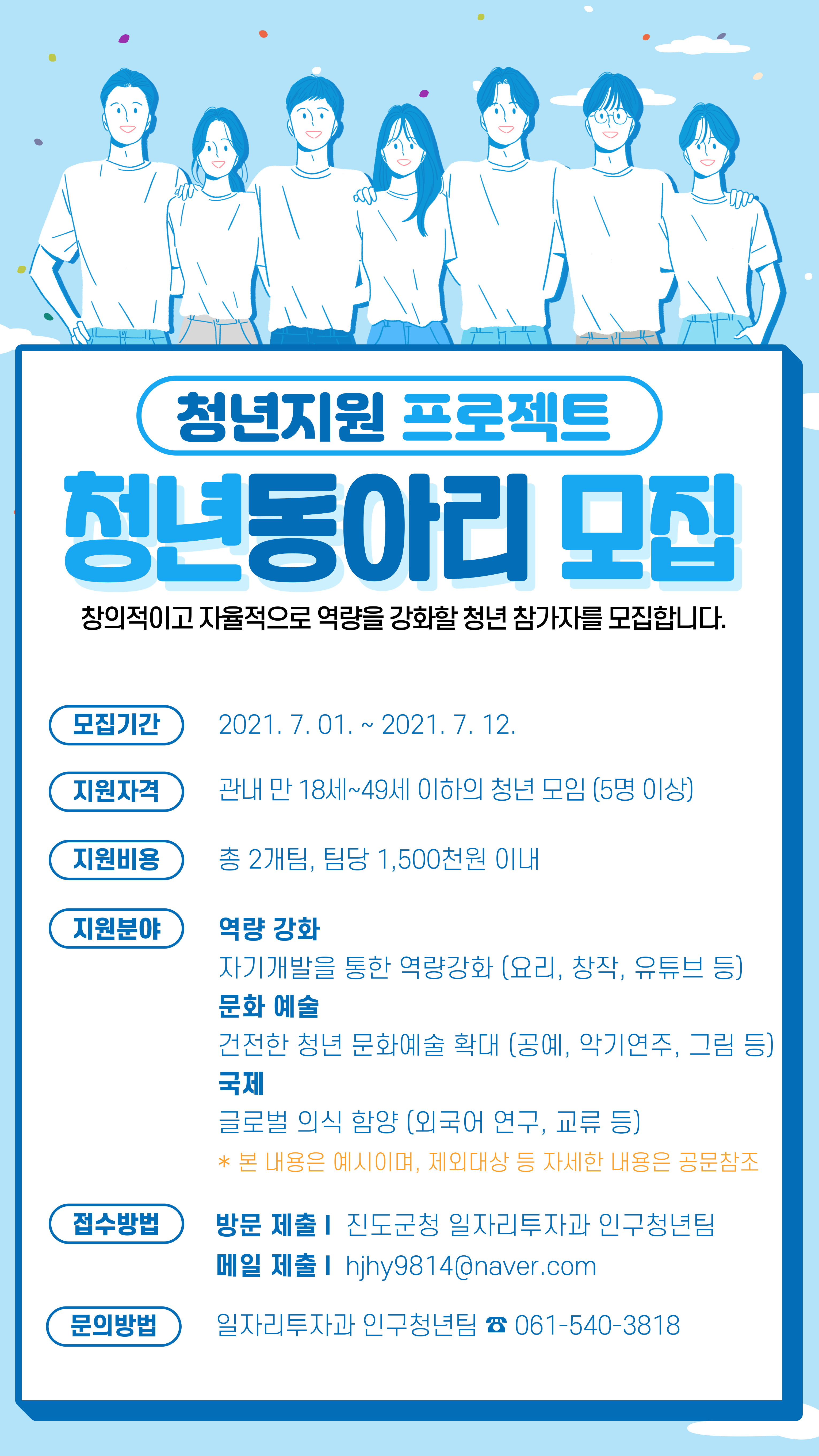 (진도군청 일자리투자과 인구청년팀)2021년 청년동아리 활성화 지원사업 추가 모집 공고