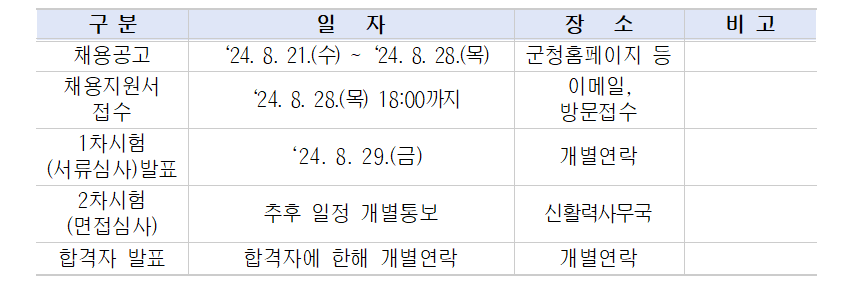 ※ 면접 일정은 사정에 따라 조정 될 수 있습니다